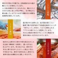 すけそうだらの卵巣(ロシア又はアメリカ)、昆布、酒(小麦)、食塩、果糖ブドウ糖液糖、発酵調味料、本みりん、米酢、かつお節粉末、昆布エキス、唐辛子、酵母エキス、デキストリン(小麦)、タンパク加水分解物(大豆)、調味料(アミノ酸等)、酸化防止剤(ビタミンC)、ナイアシン、酸味料、発色剤(亜硝酸Na)
