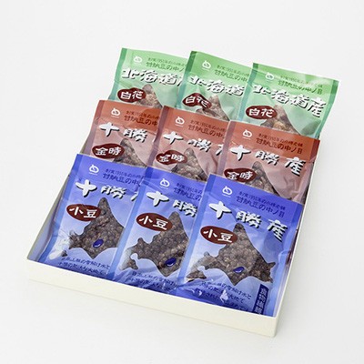 【金時甘納豆、小豆甘納豆、白花甘納豆を3袋ずつ3種セットにした詰め合わせ。】昭和25年(1950年)の設立以来、甘納豆製造一筋に取り組んできた小樽の老舗、中ノ目製菓の「甘納豆3種セット」です。金時豆・小豆は十勝産、白花は北見市近辺で収穫され、北海道産の豆にこだわり、原材料の保存も低温倉庫を5℃に設定、食の風味を大切にしています。軟水でミネラルバランスに優れた小樽の美味しい水を使って豆を丹念に煮炊し、手作りの工程を重視した丁寧な作りで仕上げています。保存料を使っていない安全安心の北海道素材を味わえる「甘納豆3種セット」。お茶受けやお子様のおやつはもちろん、金時豆を赤飯に入れて北海道ならではのほんのり甘い赤飯をお楽しみください。