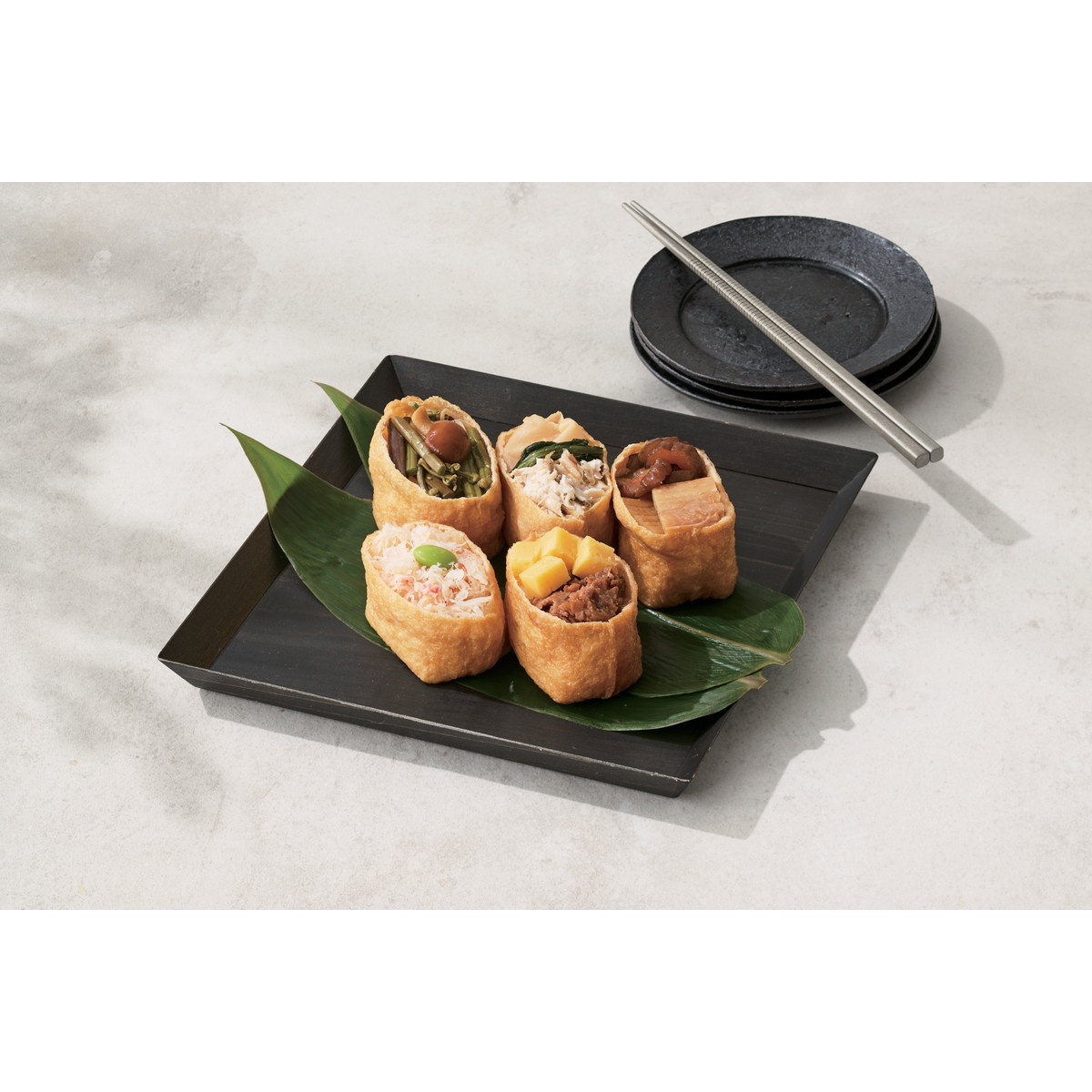 【数量・内容】ズワイガニいなり・牛しぐれいなり・焼き鯖いなり・山菜いなり・穴子いなり各2個入×2