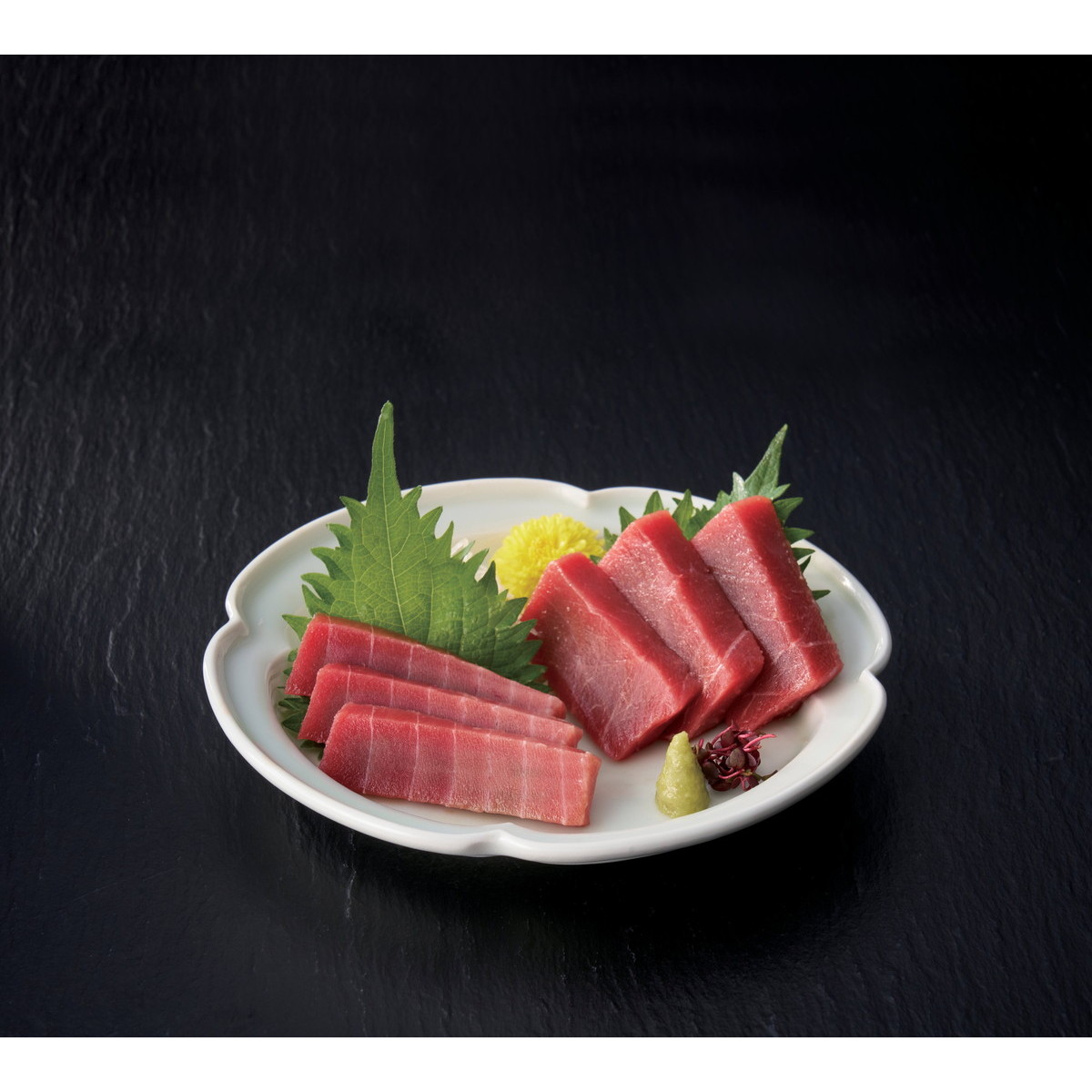 「<築地ホクエイ>天然本まぐろ詰合せ(中トロ、赤身)」 「まぐろの王様」と呼ばれる高級魚の天然本まぐろ(クロマグロ)の中トロと赤身を詰合わせました。脂がのった中トロと締まった身質の赤身をお届けいたします。天然本まぐろならではの、ほのかな酸味と旨みのバランスをお楽しみください。