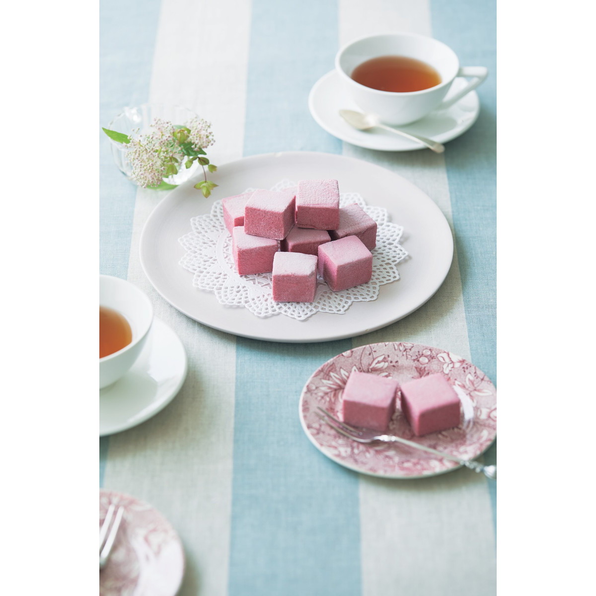 「フランボワーズ ギモーヴ ×2」 「ギモーヴ」はフランスの伝統的なコンフィズリー(砂糖菓子)のひとつです。柔らかい食感とともに、フランボワーズの酸味が口の中いっぱいに広がるクセになる味わいです。