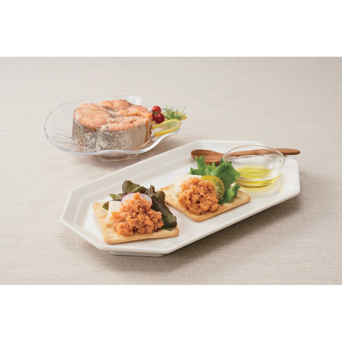【数量・内容】アラスカ産紅鮭ほぐし90g×4、アラスカ産紅鮭水煮180g×2、アラスカ産紅鮭フレークエキストラバージンオリーブオイル仕込180g