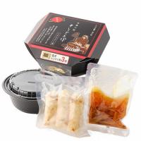 【原材料】きりたんぽ(うるち米(秋田県産)、食塩)、具入りスープ(つゆ(しょうゆ(国内製造)、鶏ガラ、酒精、みりん、食塩)、糸こんにゃく、鶏肉(秋田県産、比内地鶏100%)、ごぼう、舞茸/調味料(アミノ酸等)、水酸化カルシウム、(一部に大豆・小麦・鶏肉を含む))