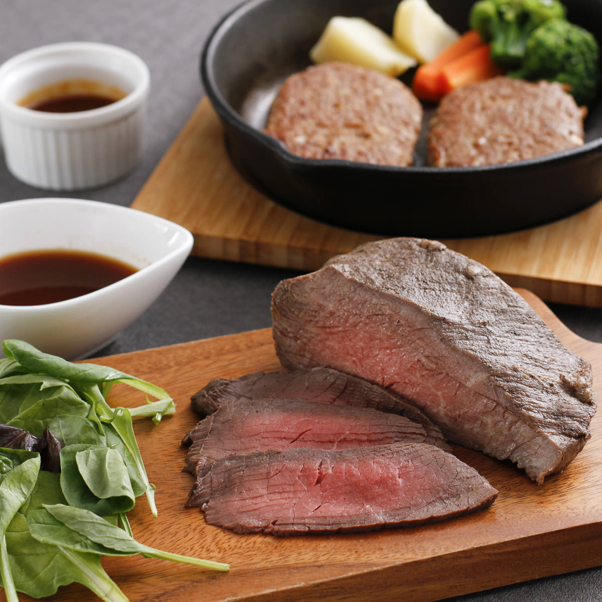 【数量・内容】(ローストビーフ200g、ソース20g×2)×1、(ビーフハンバーグ100g×2、ステーキソース30g)×2