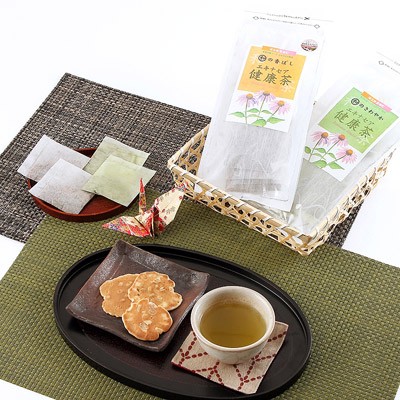 寄居町産のハーブ・エキナセアを使った健康茶。緑茶と玄米をブレンドした2種のタイプがあります。エキナセアは世界三大ハーブのひとつで民間療法として多くの方に愛用されているハーブです。