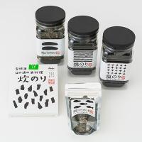 石垣島の焼き塩、一番搾りの菜種油で仕上げたあっさりした味わいの「塩のり」、パリッと焼いた香ばしさ、ふわっとした口どけの「焼きのり」、何層にも重なる海苔が、独特の舌触りを生んだ新しい佃煮「炊きのり」とふりかけにもお茶漬けにも使える「鯛のりかけ」を詰め合わせました。