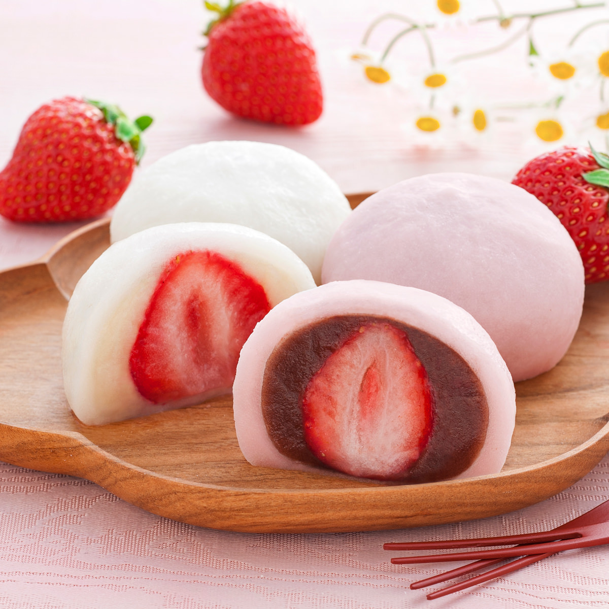 【原材料】<白あん>白あん(いんげん豆、らい豆、砂糖、水あめ)(国内製造)、もち米、いちご、もち粉、食塩、でん粉/トレハロース、酵素、(一部に大豆を含む)