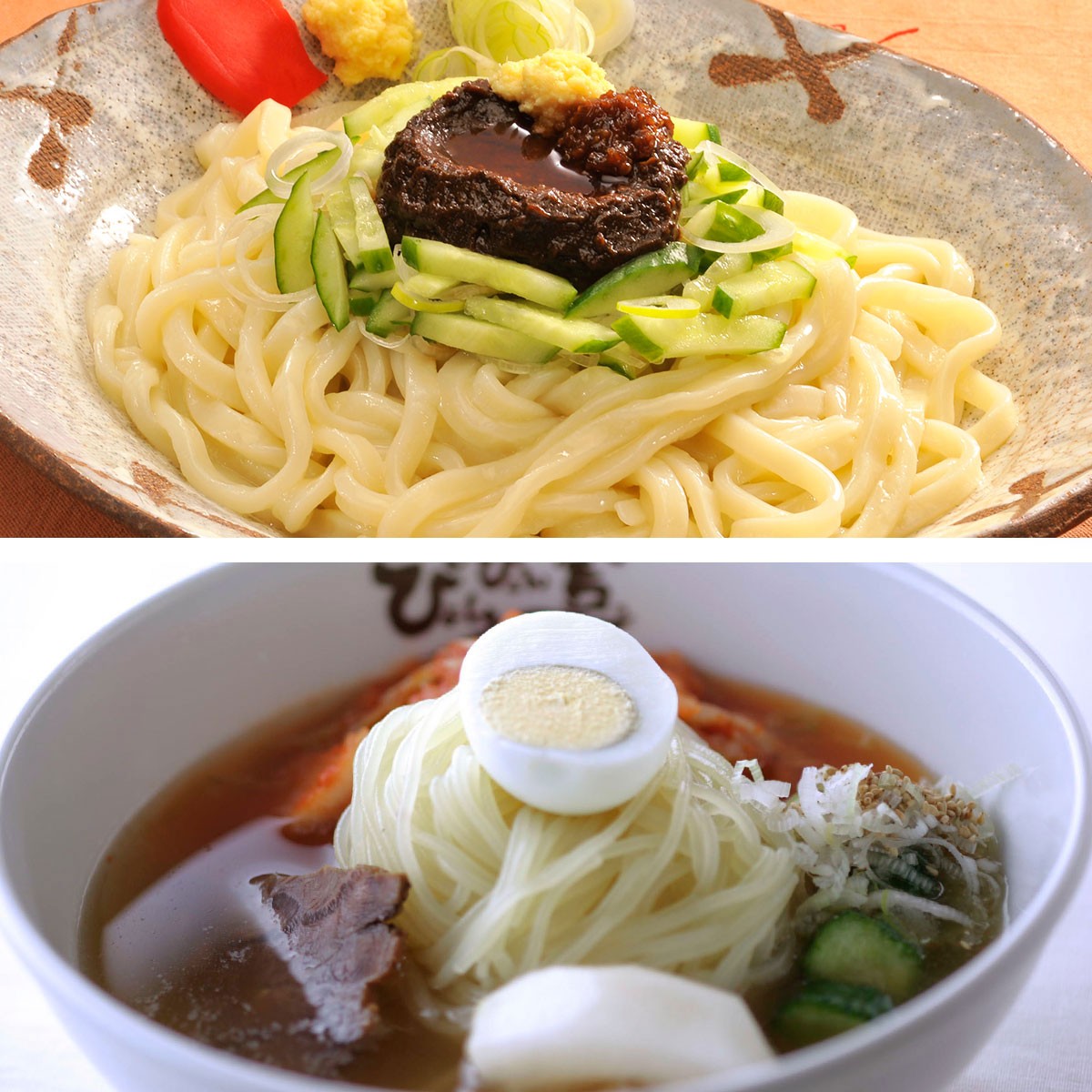 【数量・内容】盛岡冷麺(麺150g×2、スープ160g×2、キムチ40g×2、酢5g×2、ゴマ1g×2)×2袋、盛岡じゃじゃ麺(麺200g×2、スープ100g×2、肉味噌50g×2、醸造酢5g×2、おろし生姜3g×2、おろしにんにく3g×2、ラー油1g×2)×1袋
