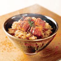 【穴子おこわ】山口県・島根県近海の国産穴子を使用し、ふっくらと焼き上げ山椒をきかせました。