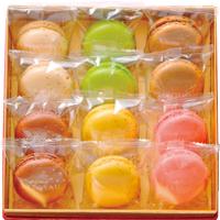 【原材料】・ヴァニーユ:砂糖(国内製造)、アーモンドパウダー、卵白(卵を含む)、バター、乾燥卵白(卵を含む)、バニラビーンズ/香料、増粘剤(キサンタン)、調味料(有機酸)・キャラメルブールサレ:砂糖(国内製造)、アーモンドパウダー、卵白(卵を含む)、バター、乳等を主要原料とする食品、乾燥卵白(卵を含む)、食塩/ソルビトール、香料、着色料(黄4、赤102、青1)、増粘剤(キサンタン)、乳化剤・シトロン:砂糖(国内製造)、アーモンドパウダー、卵白(卵を含む)、バター、レモンピューレ、はちみつ、転化糖、乾燥卵白(卵を含む)、でん粉、水あめ、こんにゃく粉/ソルビトール、増粘剤(加工デンプン、キサンタン)、香料、着色料(黄4)・ショコラ:砂糖(国内製造)、アーモンドパウダー、卵白(卵を含む)、チョコレート(乳成分を含む)、牛乳、バター、ココア、乳等を主要原料とする食品、乾燥卵白(卵を含む)、転化糖/ソルビトール、乳化剤(大豆由来)、着色料(赤102)、増粘剤(キサンタン)・テヴェール:砂糖(国内製造)、アーモンドパウダー、卵白(卵を含む)、チョコレート(乳成分を含む)、バター、乳等を主要原料とする食品、乾燥卵白(卵を含む)、抹茶/ 香料、着色料(黄4、クチナシ、青1)、増粘剤(キサンタン)・フランボワーズ:砂糖(国内製造)、アーモンドパウダー、フランボワーズジャム、卵白(卵を含む)、バター、乾燥卵白(卵を含む)/着色料(赤102)、酸味料、増粘剤(キサンタン)