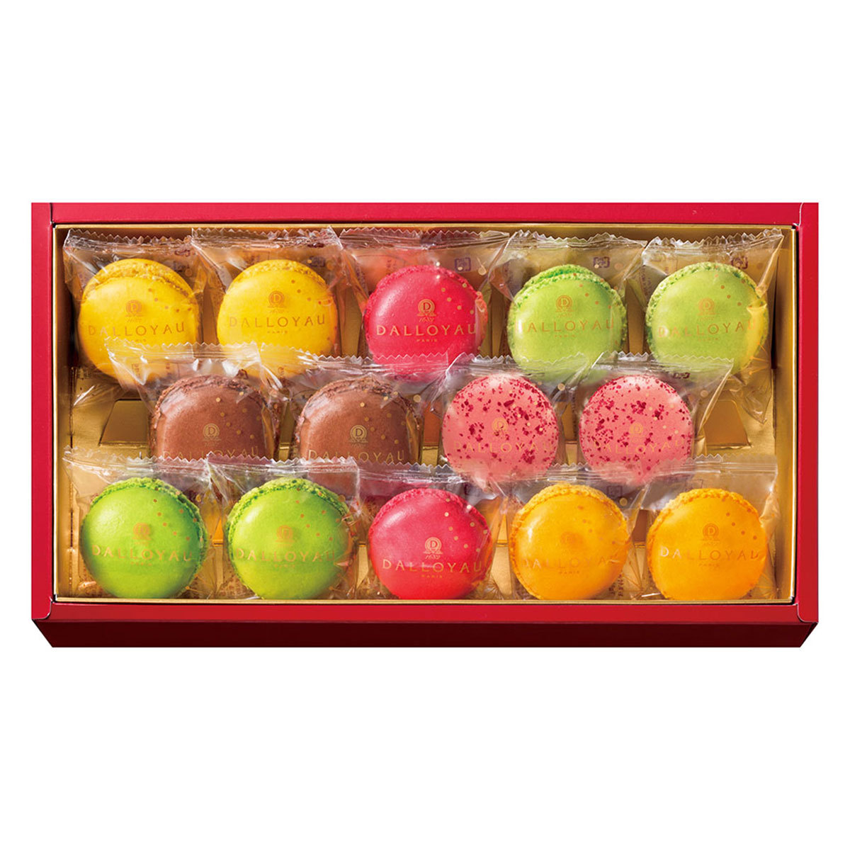 ダロワイヨのマカロン9種(あまおう、他全9種)の3箱セットです。季節のマカロンを加えた華やかな組み合わせです。外側はサクッと、中のクリームは口どけよく仕上げました。福岡産のあまおういちごを使用した「あまおう」をはじめ、季節の様々な味わいをお楽しみいただけます。 ダロワイヨのマカロンはフレンチメレンゲで作られているため繊細で割れやすく、その食感がおいしさの秘訣となっています。クリームには素材の味を活かしたジャムやコンポートを使用することで、香り高い仕上がりになりました。 フランスの伝統の製法を守り、こだわりの食材で熟練の職人が手作りした優雅な味わいをぜひご賞味ください。