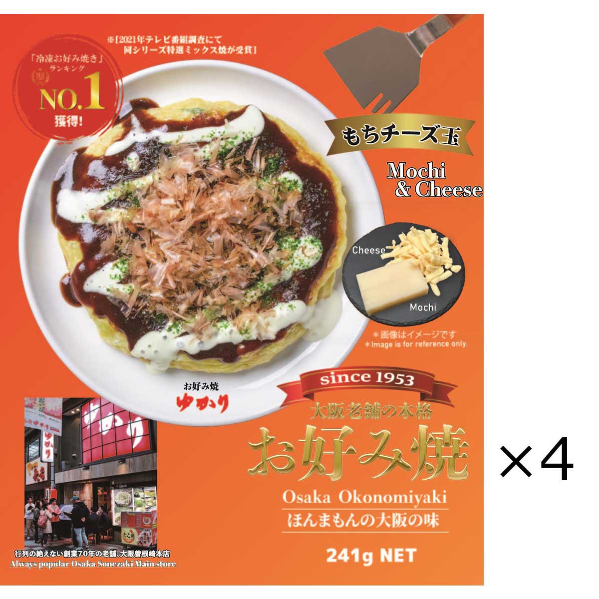 昭和25年創業の老舗「お好み焼ゆかり」から冷凍お好み焼が登場。人気のもちチーズ味の4枚セットです。個別包装の中にはソース・ホワイトマヨソース・かつお節・あおさ入り。電子レンジかフライパンで温めていただくだけの簡単調理でお召し上がりいただけます。ご自宅で本場の味をご賞味ください。※テレビ放映などの影響を受け注文が殺到した場合には発送にお時間をいただく場合がございます。
