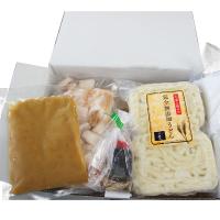 【数量・内容(だし汁800g、調合味噌129g、牛もつ(国産牛小腸)200g、特製にんにく醤油15g、ゴマ5g、唐辛子0.5g、うどん麺250g)×各2
