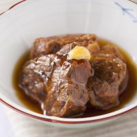 「馬肉の角煮2個セット」です。コラーゲンたっぷり、トロトロの食感です。馬肉のすね肉を使い、4時間かけ、じっくりと煮込みました。おしょう油屋さんが作った美味しい角煮を、ご自宅でお楽しみください。