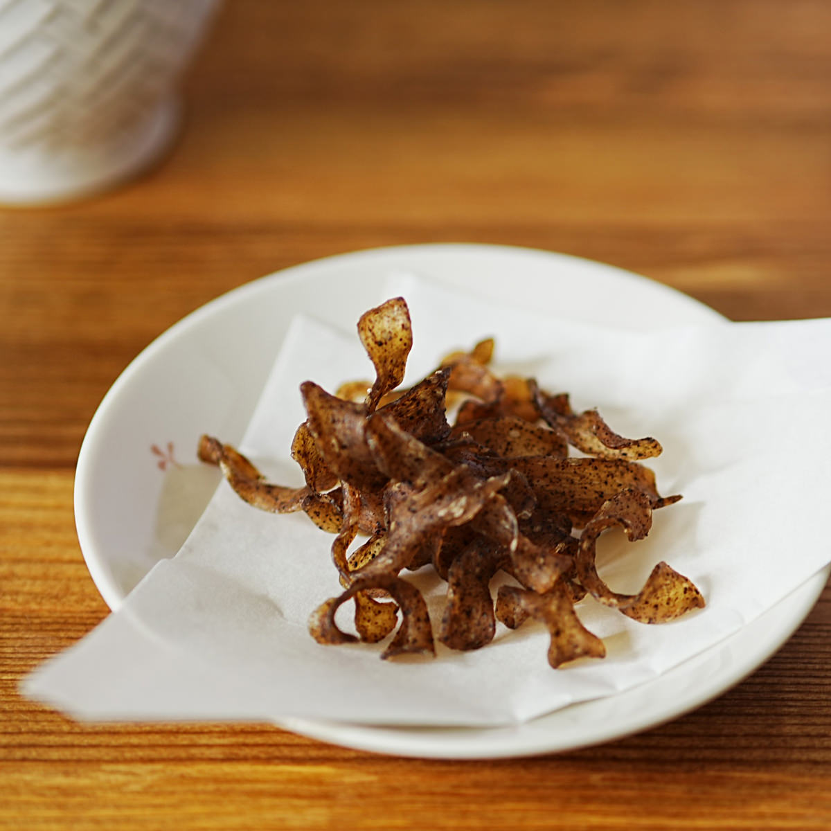 「干しの蒟蒻 あまから醤油」は、こんにゃくを味付け乾燥したおつまみこんにゃくです。蒟蒻をそのまま食べられるおやつにしました。1袋にこんにゃく約1丁分を乾燥させた量が入っています。主原料のこんにゃくは日本有数水質の仁淀川(四国 高知県)の水を使用しているため、純度の高い乾燥に仕上がりました。乾燥はムラを防ぐため、一枚一枚丁寧に手作業で行っております。保存料、着色料不使用です。カムカム、おつまみジャーキー、キノコや人参を刻んで炊き込みご飯としてもお召し上がりいただけます。