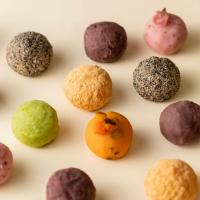 「七福おはぎ」は、曲げわっぱの中に、七つの福がいっぱいに詰まったカラフルで可愛らしいミニおはぎセットです。この七福おはぎは、一口サイズのおはぎを少しずつお楽しみいただけるため、いろんな味を食べてみたいという方におススメです。大切な方へのギフト用の和菓子に、自分へのご褒美スイーツにぴったりの華やかなお菓子です。