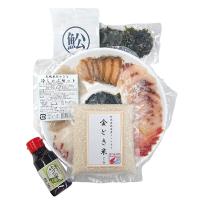 【数量・内容】冷しゃぶ(黒鮑15g、甘海老28g、たこ50g、ごまふぐ50g、鯛50g、わかめ50g、ぎんば藻50g)、金とき米2合、特製ポン酢100ml、出汁とり用昆布1切