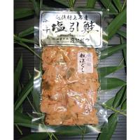 新潟県村上市の伝統的な郷土料理である塩引き鮭を使用した「村上の塩引鮭 粗ほぐし」です。塩引き鮭の切り身を炭火で焼き、手作業で少し大きめのほぐし身にして真空包装しました。おにぎりやお茶漬けの具材などとして、そのままお使いいただけます。厳選した国内産鮭の内臓やエラを取り出し、塩を丁寧に擦り込んだ後、数日置いてから水洗いして塩を抜き、村上地方特有の浜風で寒風干しにして、じっくり熟成させた塩引き鮭を使用しました。昔ながらの製法にこだわって仕上げた自慢の逸品を食べやすい鮭フレークにしましたので、鮭おにぎりや鮭茶漬けをはじめ、鮭チャーハンの具材、アツアツのごはんのおともなどとして、越後村上名産の塩引鮭のほぐし身をお取り寄せでお楽しみください。