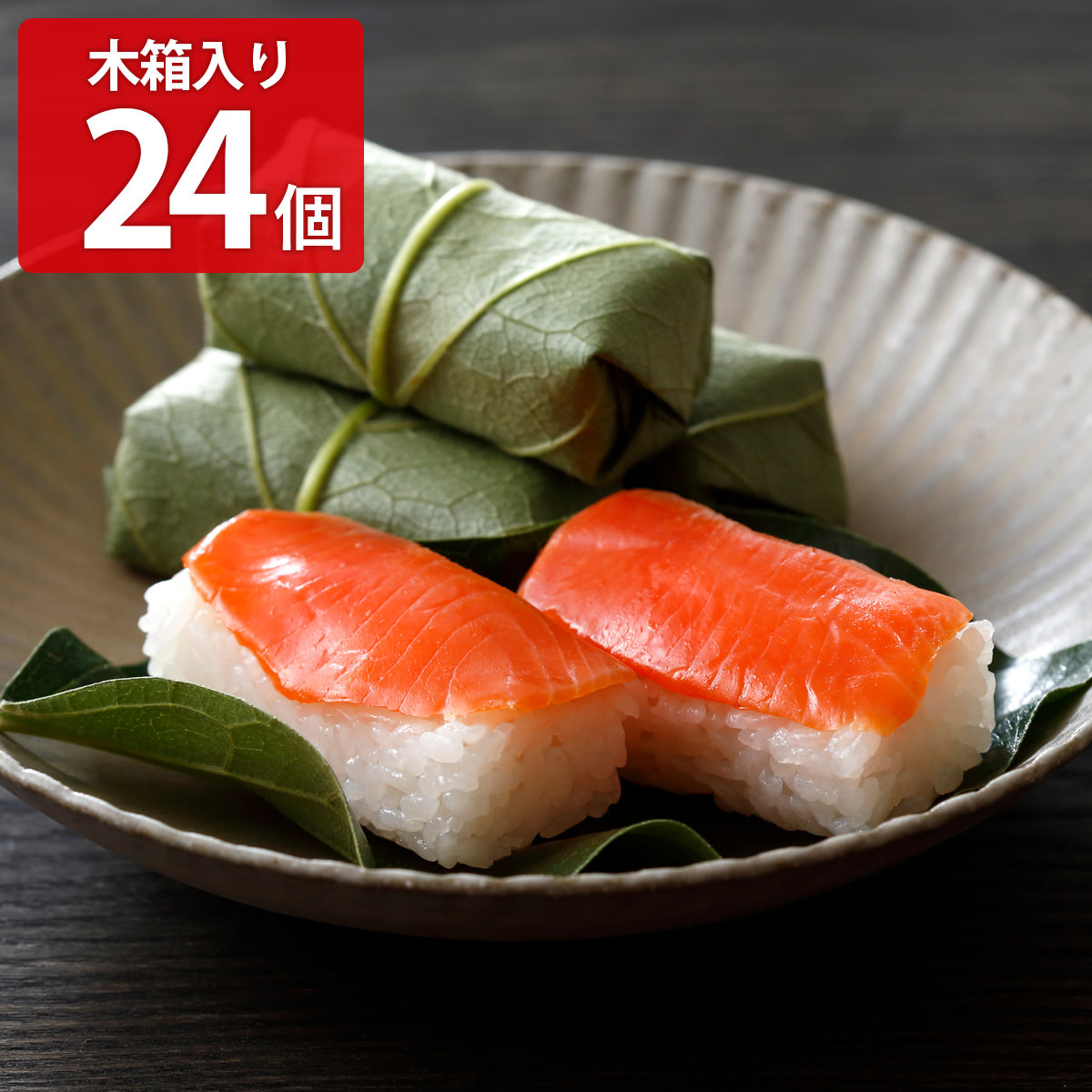 「柿の葉ずしヤマト 木箱 さけ」は古くから奈良県で親しまれてきた郷土料理「柿の葉ずし」です。柿の葉ずし一筋でおいしさを追求してきたヤマトの柿の葉ずしは、昔ながらの手包み製法で一つ一つ製造しています。新鮮な魚を厳選し、特製の酢にじっくりと漬け込むことで魚の食感とコクを一層際立たせております。お米は新潟県産コシヒカリを使用し、自社関連工場で精米する等こだわっています。ふうわりと心地良く香る柿の葉を、そっと開けば大きな具。ひと口食せば豊かな味わいにご満足いただけます。
