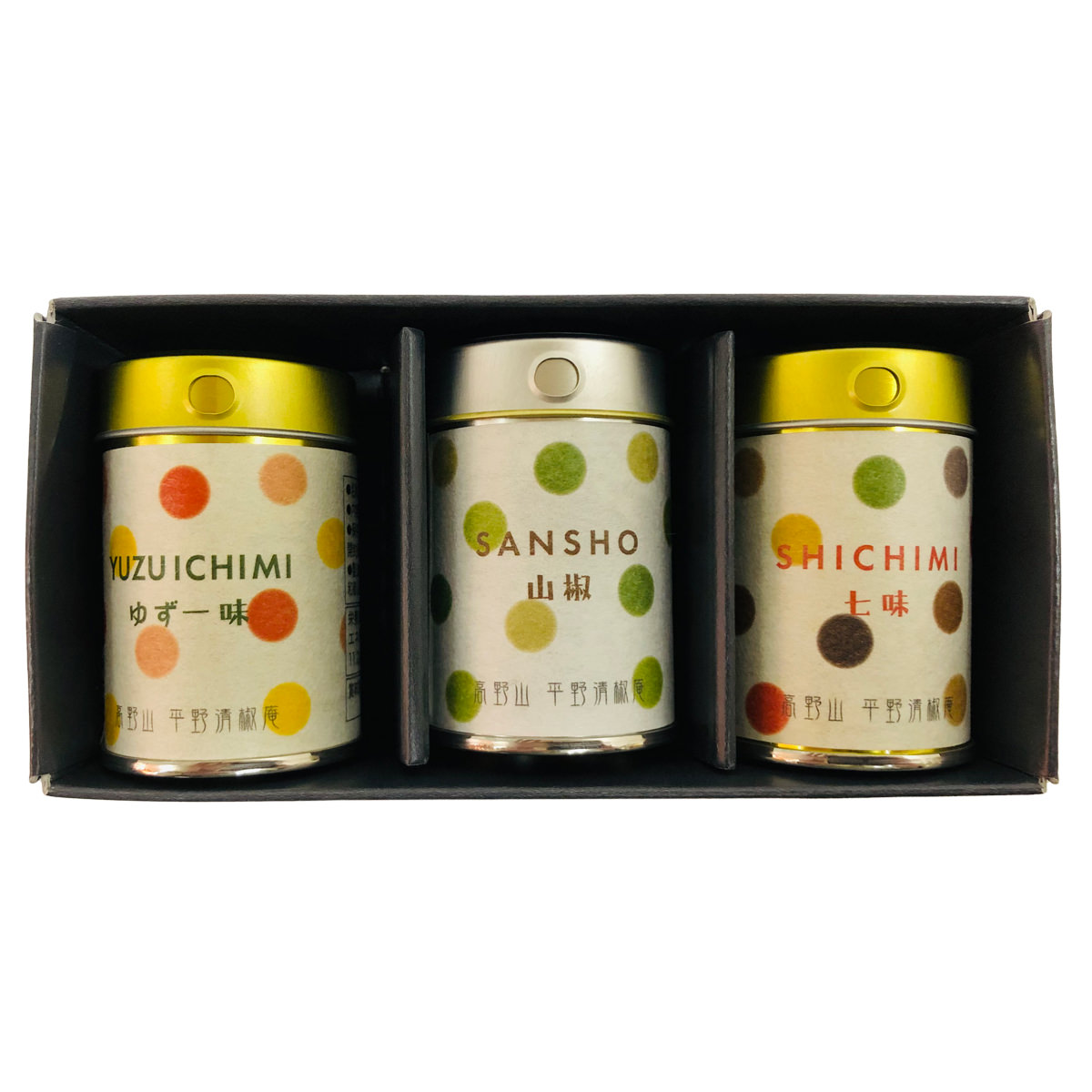 高野山 平野清椒庵 粉山椒 ゆず一味 七味缶 詰め合わせ ギフトBOX