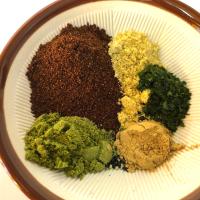 <七味>唐辛子(鹿児島県産)、黒胡麻、山椒、みかん陳皮、白胡麻、青さ、生姜
