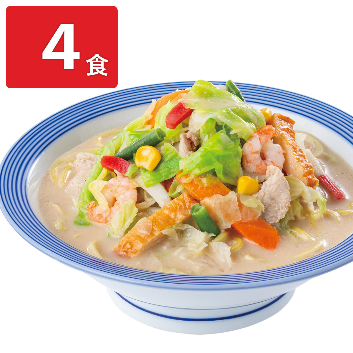具材にたっぷりの国産野菜と、揚げかまぼこ、豚肉、はんぺん、えびを使用した「リンガーハット 野菜たっぷりちゃんぽん」です。全国に展開する長崎ちゃんぽん専門店「リンガーハット」の店舗で味わえる長崎ちゃんぽんを、ご家庭で手軽に食べられるように開発しました。1日に必要な野菜の2/3が摂れます。しょうがドレッシングも付属します。