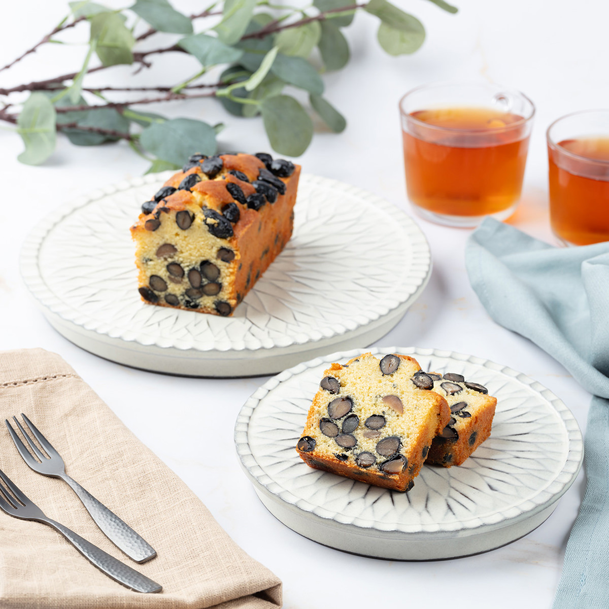 大粒の丹波黒大豆・北海道産バターをふんだんに使用した「神戸屋 大粒丹波黒豆 パウンドケーキ」です。隠し味にふんわりと柚子を効かせた、黒豆の味が引き立つ贅沢な味わいです。一つひとつ丁寧にしっとりと焼き上げたバター香るケーキと、たっぷりの丹波黒豆の味わいをお楽しみください。1〜1.5cmの厚さにカットしてお召し上がりください。