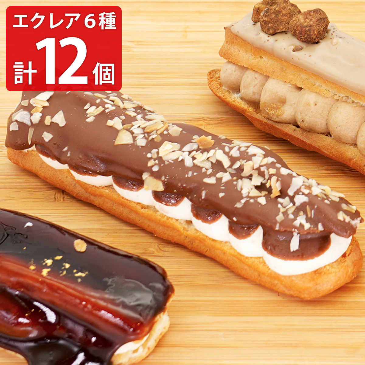 冷凍でお届けします。そのままアイスエクレアとして食べるほか、冷蔵庫で1時間ほど解凍してお召し上がりください。解凍後は翌日までに食べきってください。化粧箱に入れてお届けいたしますので、贈り物やプレゼントにもおすすめです。