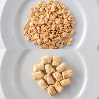 <小粒>そのままたんぱく源として食べることもできます。クルトンの代わりにスープやサラダのトッピングとして使用できます。水戻ししたものは、そぼろやツナ風として使用するのに向いております。