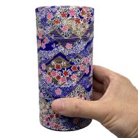 商品名:野口熊太郎茶園 茶筒 茶缶 大容量 200g 友禅和紙貼 中蓋付き 桜吹雪 日本製 おしゃれ