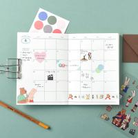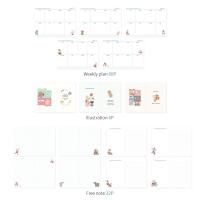 サイズ</br> カバー : W 13.5 x H 19.1 x D 1.6 (CM)</br> </br> 材質</br> 紙</br> </br> ページ構成 - 1P</br> 月間計画 - 12P</br> 週間計画 - 60P</br> フリーノート - 44P</br> イラスト - 11P</br> 合計 - 128P</br>
