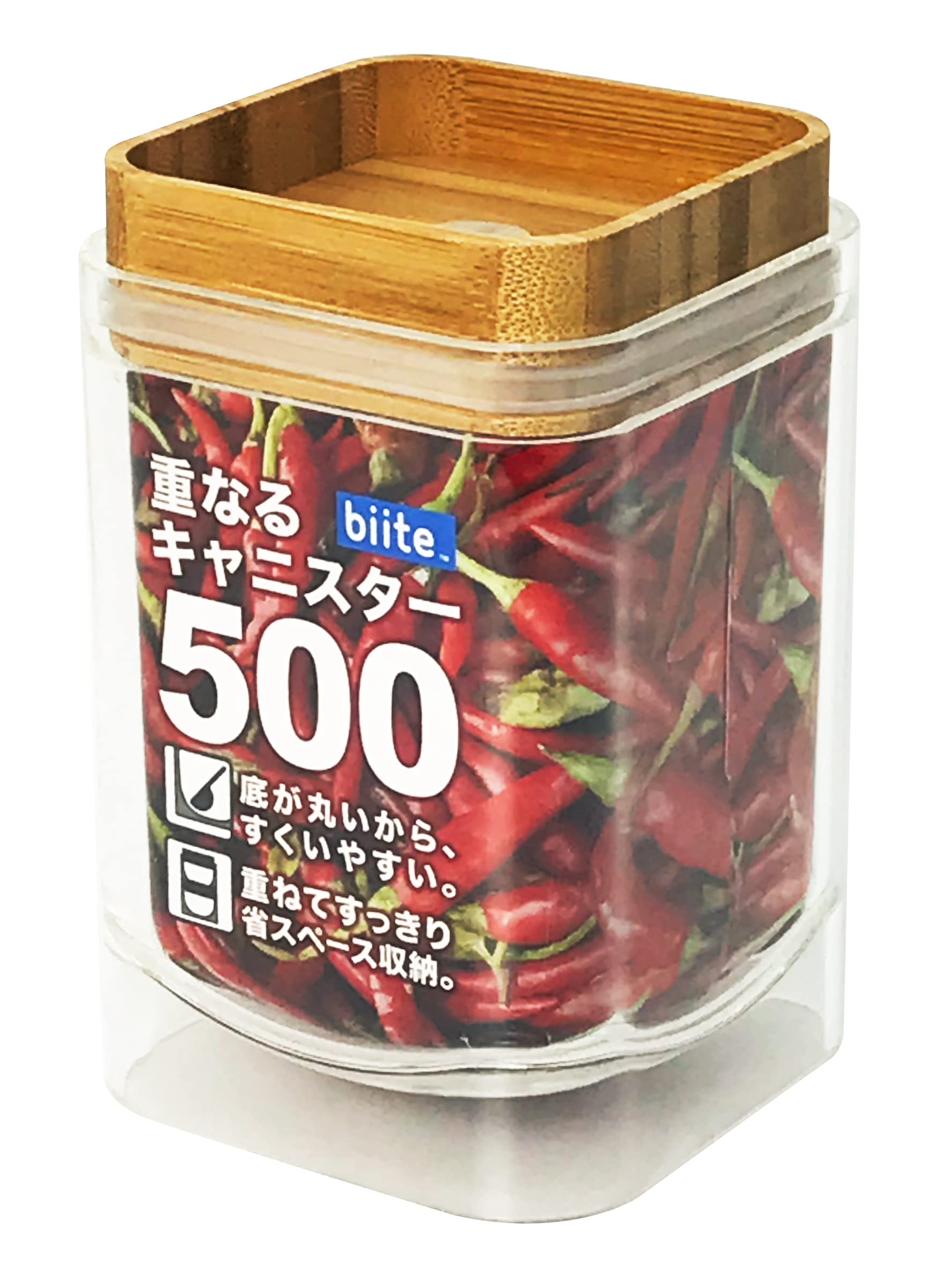 商品名:ビッテ(biite)重なるキャニスター バンブー (500ml, スクエア) 保存 容器 調味 料 スパイス 入れ ストッカー