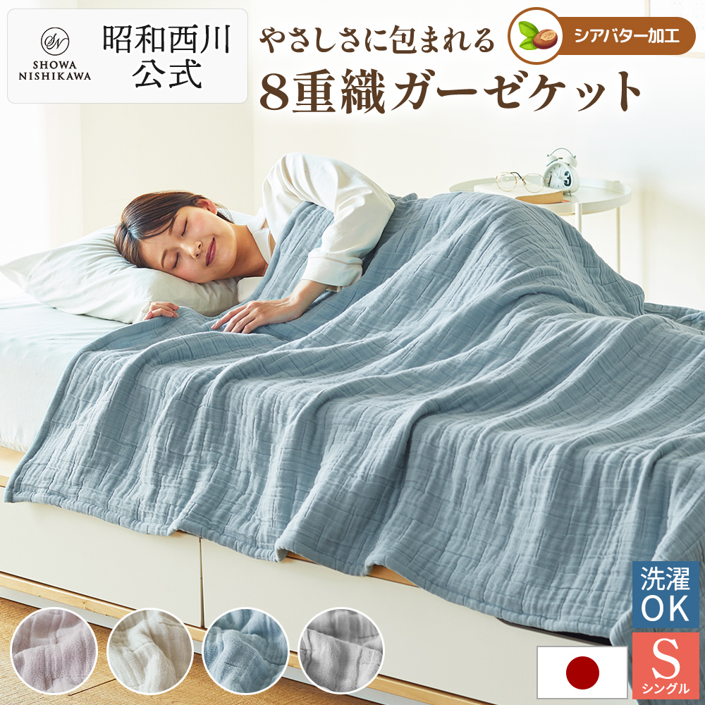 ガーゼケット シングル 日本製 8重織り 昭和 西川 綿100% 洗える シアバター加工 なめらか肌触り しっとり 通気性 吸放湿性 天然素材 年間 春夏 掛け