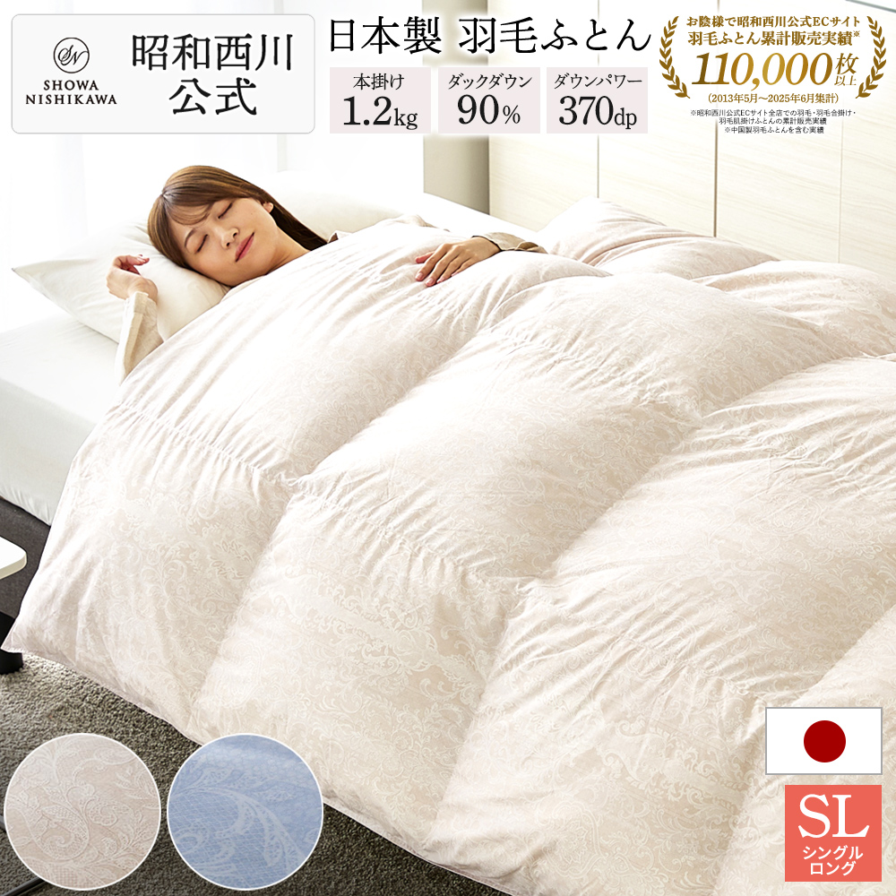 1.0kg、1.1kg充填の羽毛ふとんが多いですが、ダウンコート1枚分(約100g)を増量しています。