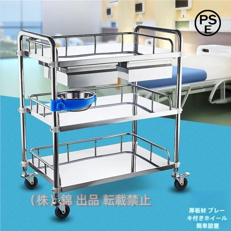 移動式ステンレス鋼の医療機器のトロリー美容院の処置車キャスター付き医療用トロリーステンレススチール製医療カート株式会社錦ダブル引き出し付き病院用トロリ
