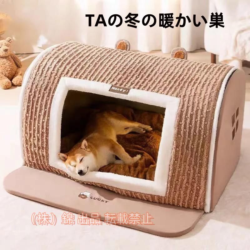 ペットベッドの入口の開口部が小さく設計されており、外の風を有効に遮断でき、しっかり熱量を閉じて、暖かさを保ちます。愛犬や愛猫にとって居心地の良い空間を提供します。ペットハウスの底面が滑り止め機能を備えているので、簡単に滑ることができません。また、底には、防湿素材を使用して、地面からの湿気や水気等を遮断してくれます。湿気によるペットの皮膚病を効果的に防ぎます。中敷きクッションは取り出しでき、お手入れ簡単です。愛するペットはより清潔な、 暖かい秋、冬を過ごせます。夏は中敷きをひんやりマットに交換すれば、ペットも快適に過ごすことができます。