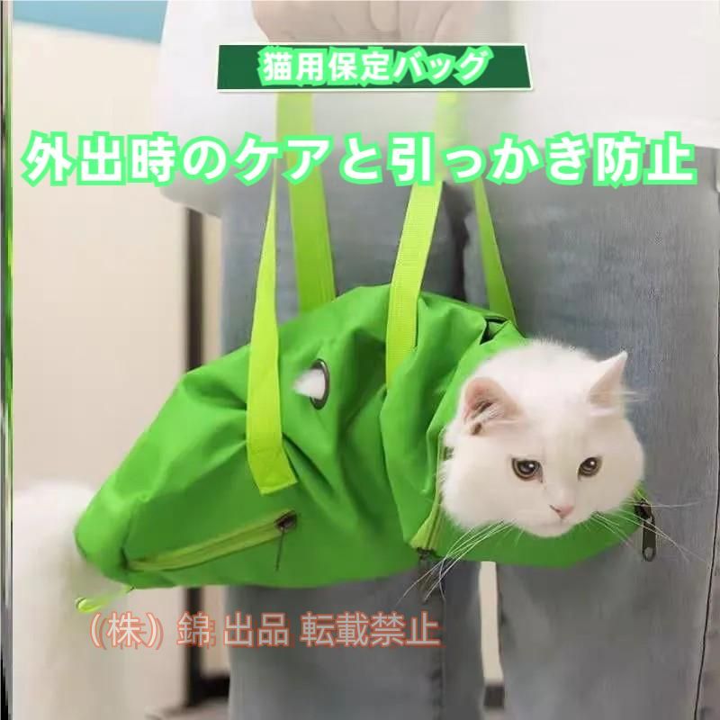 猫の保定用の袋・お手入れバッグです。引っかかれずに猫の爪を切ったり・シャンプーをする事が可能です。また通院や診察時に動物病院で暴れてしまう猫さんや・強制給餌(給餌)・点滴・自家輸液(自宅輸液)の際にお使いいただける多機能キャリーバッグです。猫だけではなく小型犬にもおすすめのグッズです。