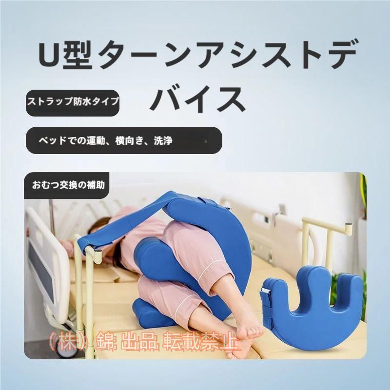 患者用ターニングデバイス U型介護寝返りクッション 床ずれ防止 リハビリ用具 看護 車椅子用クッション 高齢者、患者、身体障害の介護に適用 PUレザー 防水 青い