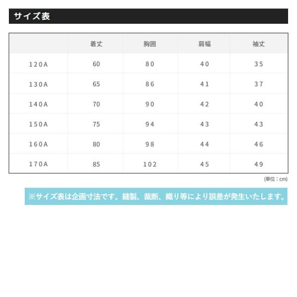 サイズ展開:A体(120cm 130cm 140cm 150cm 160cm)