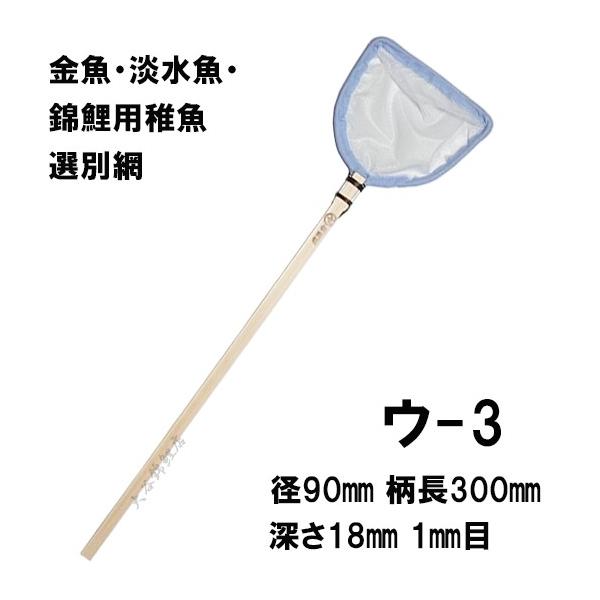 ▽松田漁具店 選別網 ウ-3 白 径9cm 柄長30cm 1mm目 金魚・淡水魚・錦鯉用稚魚選別網(扇羽型) 2点目より300円引