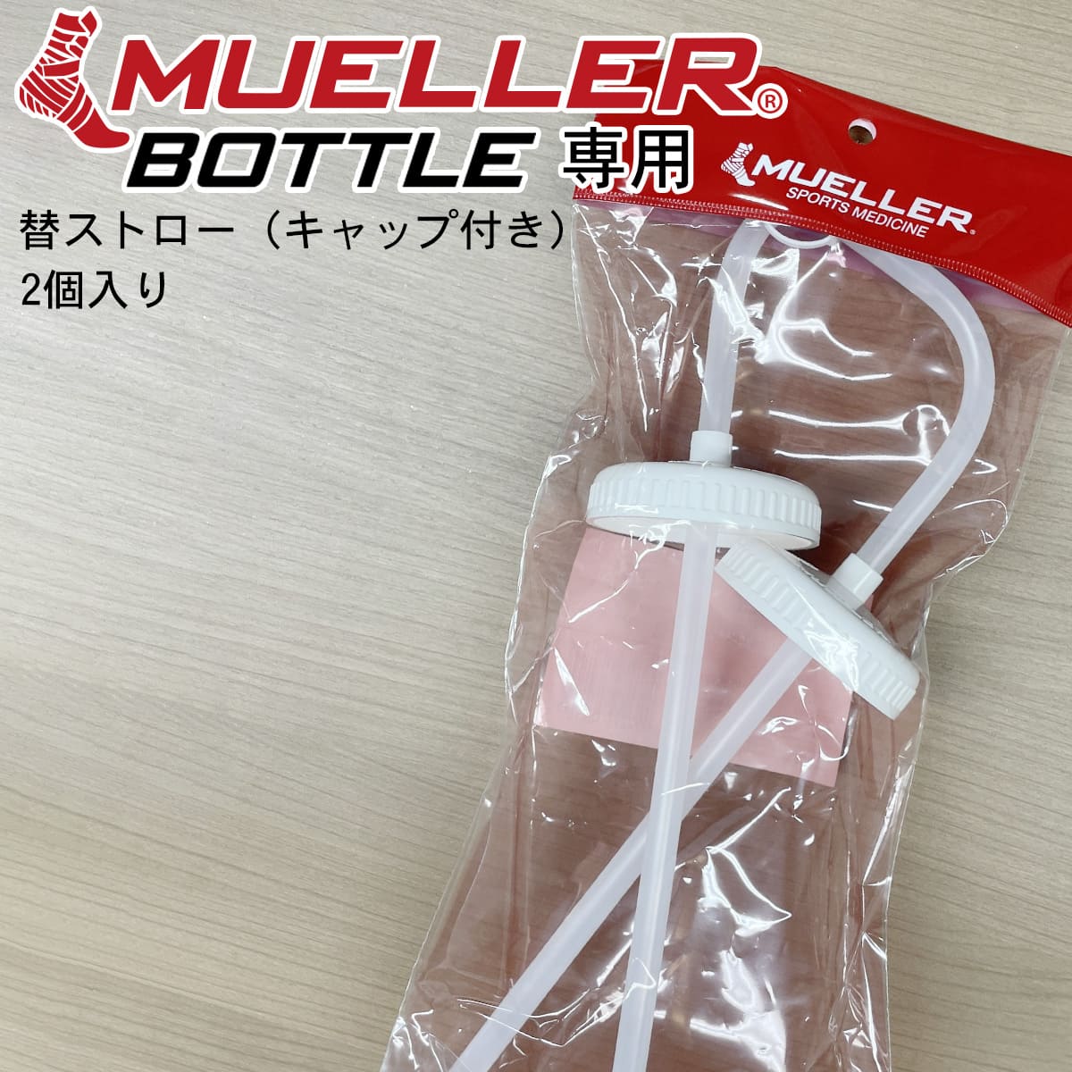剣道 MUELLER ウォーターボトル 専用 替えストロー キャップ付き 2個1セット ミューラー ボトル ブラック/レッド