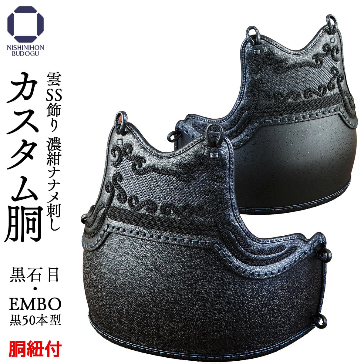 剣道 防具 胴単品 カスタム胴 雲SS飾り 濃紺ナナメ刺し 黒石目・EMBO(胴紐付き) 【完了品】 替え胴
