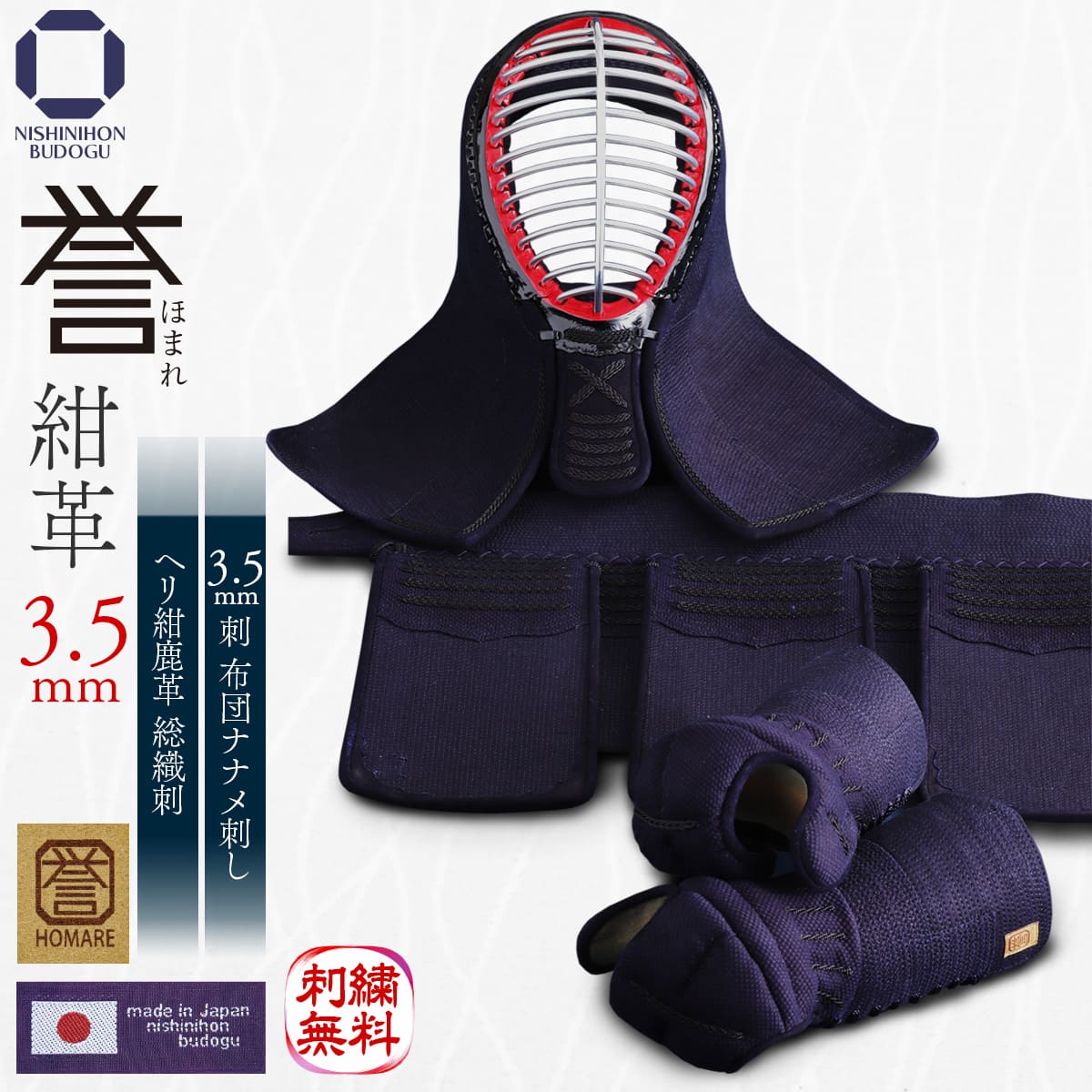 剣道 防具セット(胴抜きセット)武州正藍染 日本製 誉 - HOMARE- 紺革 3.5mm刺