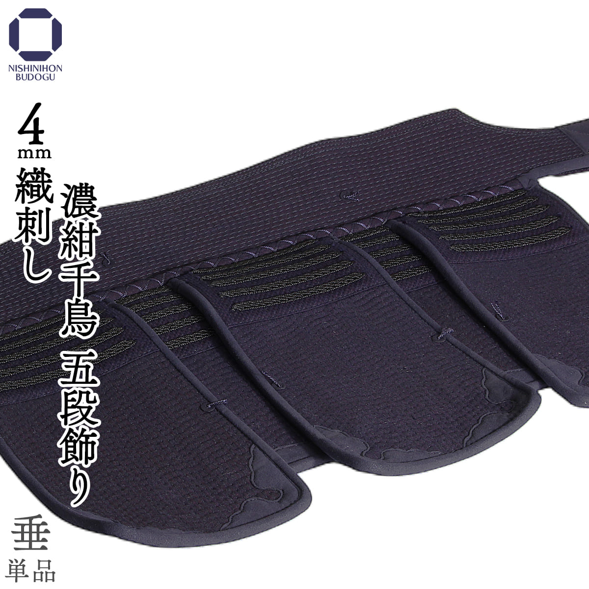 剣道 防具 垂単品 4mm織刺 濃紺千鳥 5段飾り 中学生・高校生・一般向けサイズ