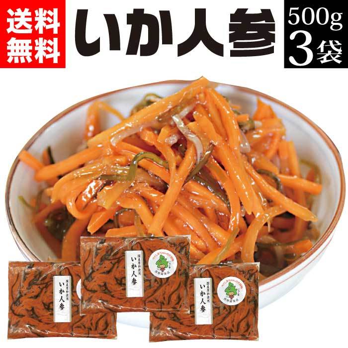 | 人参(国産)、いか、昆布、漬け原材料(アミノ酸液、醤油、発酵調味液、砂糖、還元水飴、醸造酢、鰹節エキス)/調味料(アミノ酸等)、酒精、保存料(ソルビン酸K)、増粘剤(キサンタン)、(原材料の一部に小麦・いか・大豆を含む) |