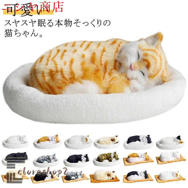 呼吸して眠るリアルな猫のぬいぐるみ ねこ ぬいぐるみ リアル 本物 そっくり ペット すやすや眠る お腹が上下する 動く ペットロス ベッド付き アレ