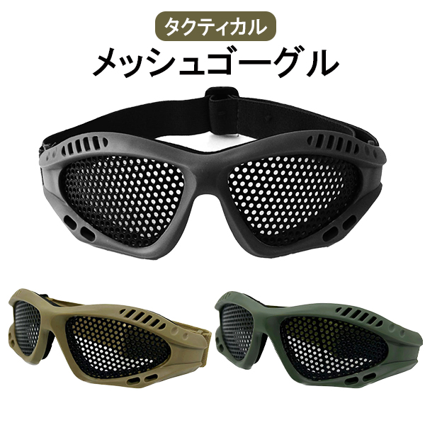タクティカル メッシュゴーグル 低炭素鋼 パンチング メタル ゴーグル 通気性 抜群 曇らない 夏場 快適 軽量 スチール フリー サイズ BK/CB/OD