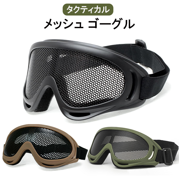 タクティカル メッシュゴーグル TPE パンチング メタル ゴーグル 通気性 抜群 曇らない 夏場 快適 軽量 スチール フリー サイズ BK/CB/OD