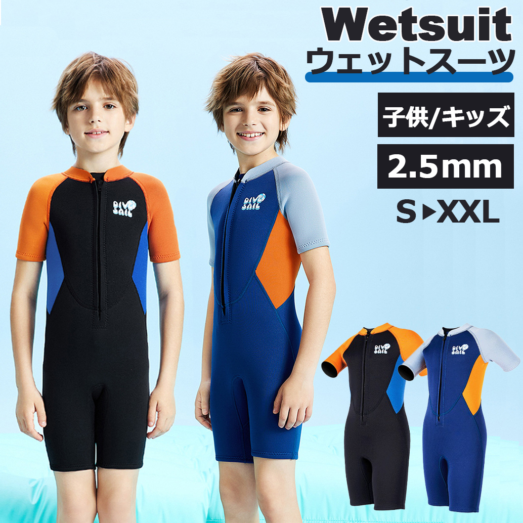 ウェットスーツ キッズ 子供 男の子 半袖半ズボン ネオプレーン ダイビング用 Dive&Sail 厚さ 2.5mm 耐久性 保温性 おしゃれ UVカット 日焼け防止 水着 ビーチ