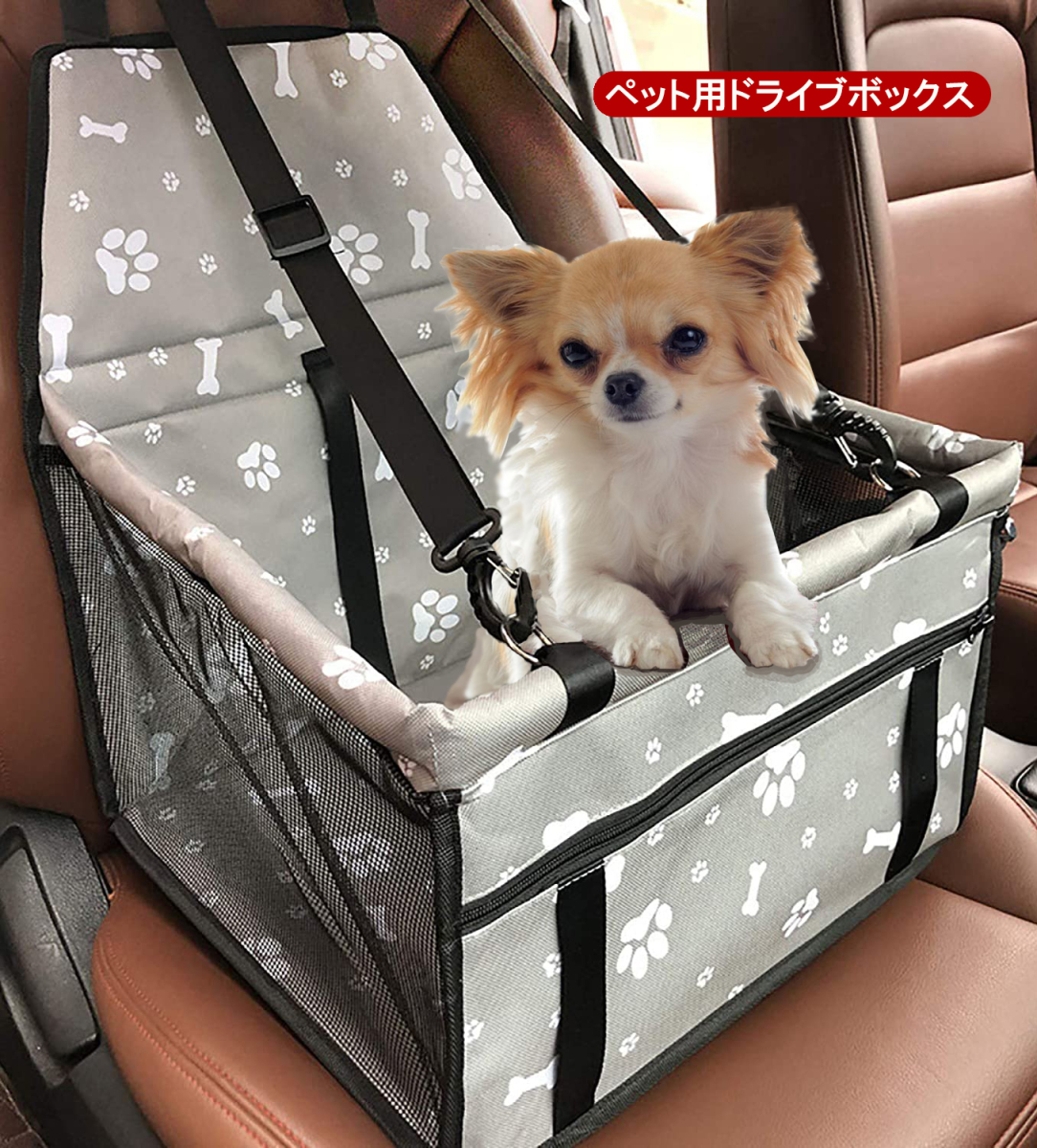 ペット用ドライブボックス 車用ペットシート 座席シート 折り畳み式カバー 飛び出し防止 防水 通気 洗濯可 汚れにくい 犬 猫 旅行 ペットキャリー ブラック/グレ